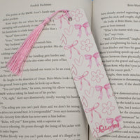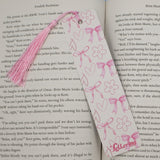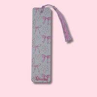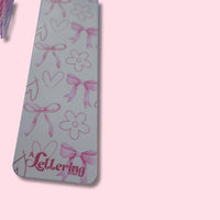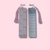 Add a touch of charm to your reading with the Coquette Single Sided Bookmark. Featuring a delightful pink design adorned with bows, hearts, and flowers, this durable bookmark keeps your pages secure in style. Personalize it by choosing your favorite tassel color to make it uniquely yours—perfect for brightening your reading routine or gifting to a book lover.